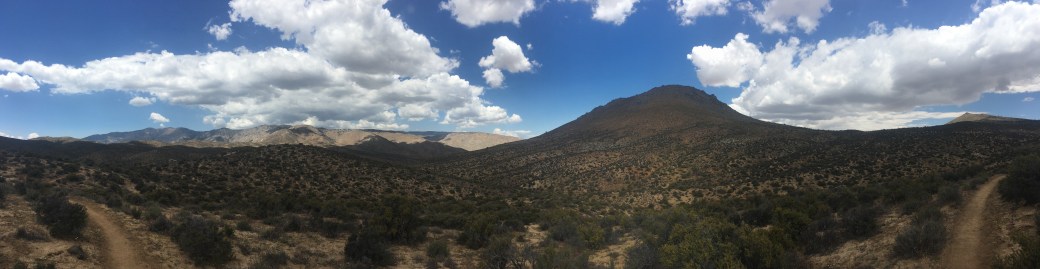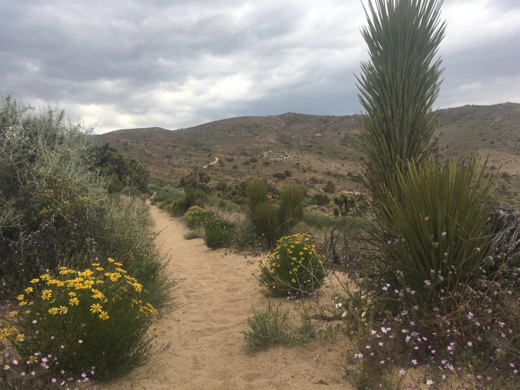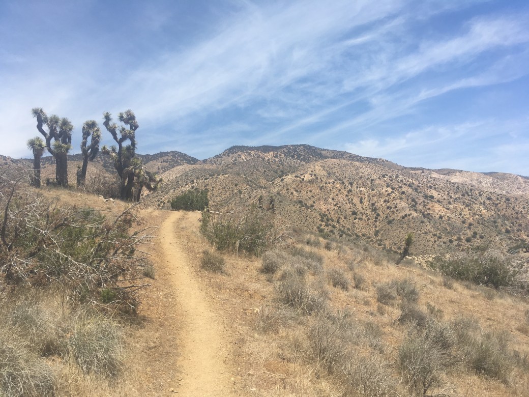 The start of Section F is along Highway 58 and up into the mountains. There are many Joshua trees along the way. We had a very windy night at our tent site (not really a surprise because we could still see windmills).