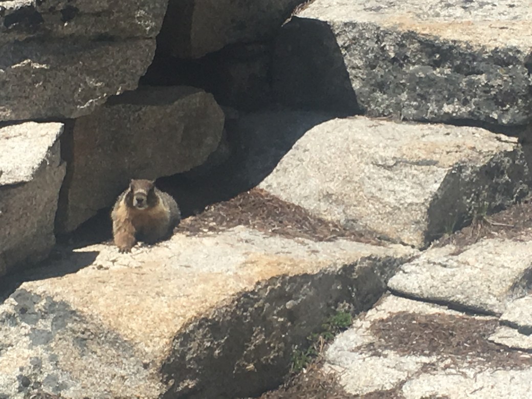 The lake is absolutely beautiful with jagged mountains rising up around the sides. Charles and I both took a quick dip in the lake (it was really cold!), which felt refreshing. We also started to see marmots wandering amongst the rocks and investigating camp sites.
