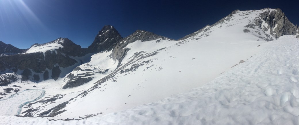 Day sixty-two was the hike up Forester Pass, the tallest point on the PCT at 13,124 feet. We were a bit nervous and not sure what to expect. We woke up at 3:00AM to ice covering our gear. We had been reading posts on our Guthooks app of people who hiked through the pass previously recommending an early start so the snow is still frozen.