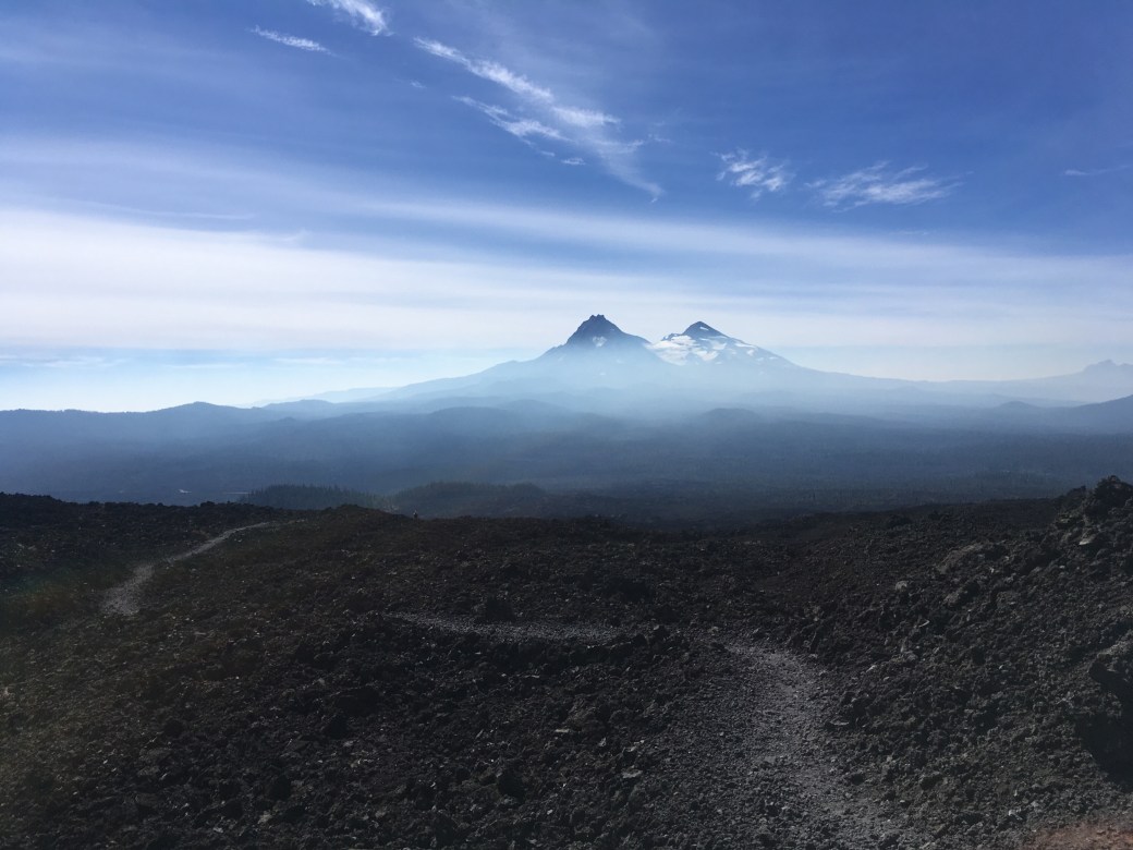 Back at the pass we explored a “castle” lookout tower. The smoke we had two days before finally cleared and we had views of the Sisters, Mt. Washington, and Mt. Jefferson in the distance. We finished walking through the lava fields, which felt easier the second time around.
