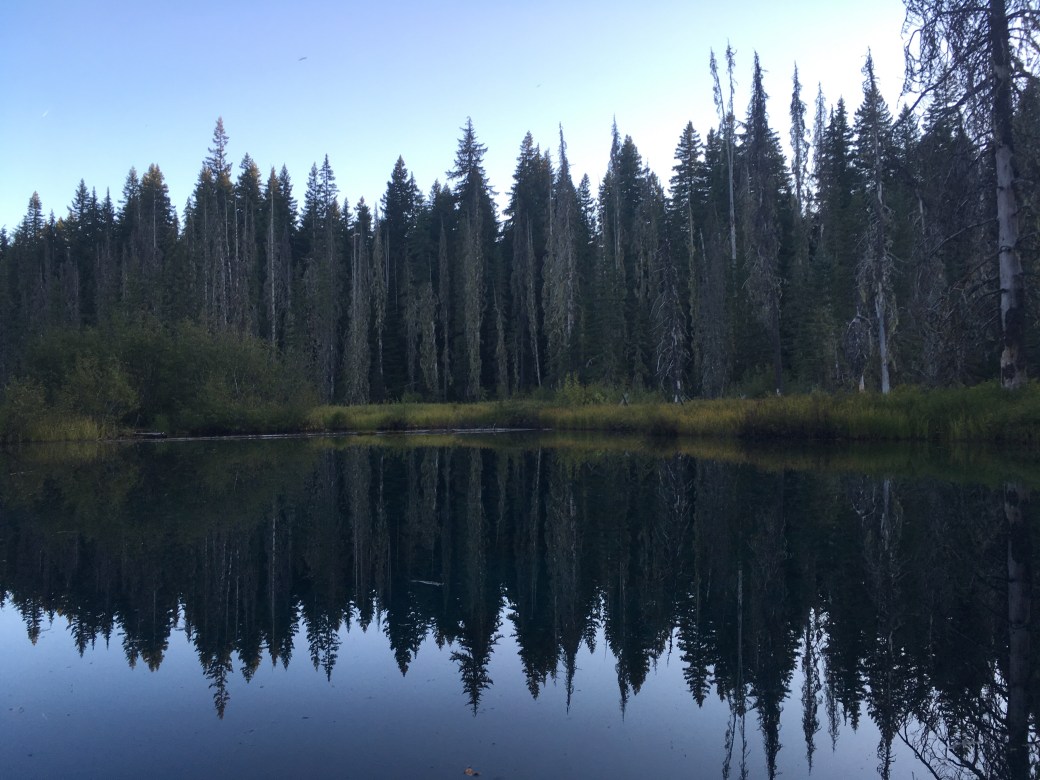 The next day was Charles’ twenty-third Birthday. He got to celebrate with some trail magic in the evening. We passed by Little Crater Lake, a small, forty-five foot deep pond one can see straight to the bottom where dead trees rest.