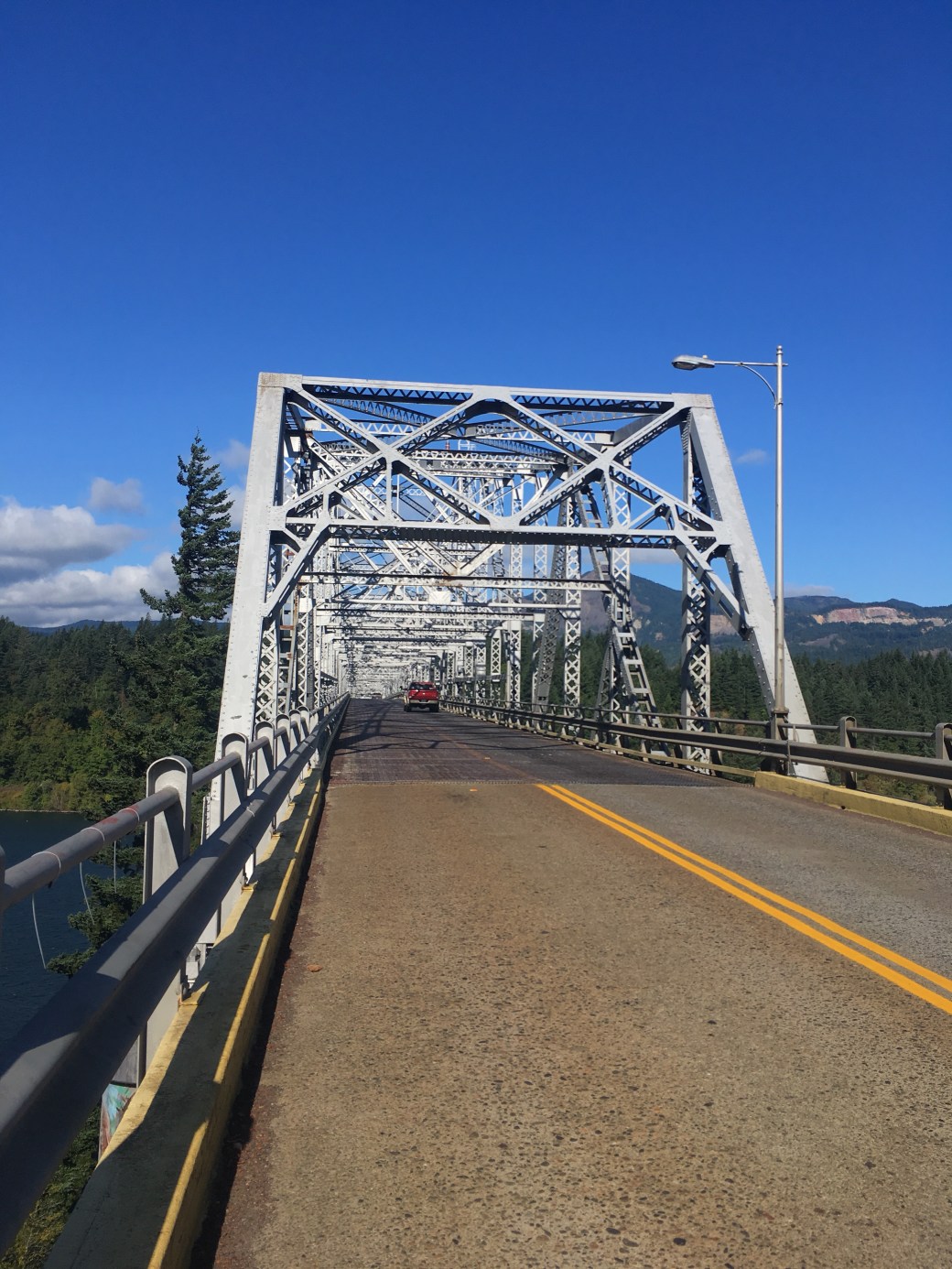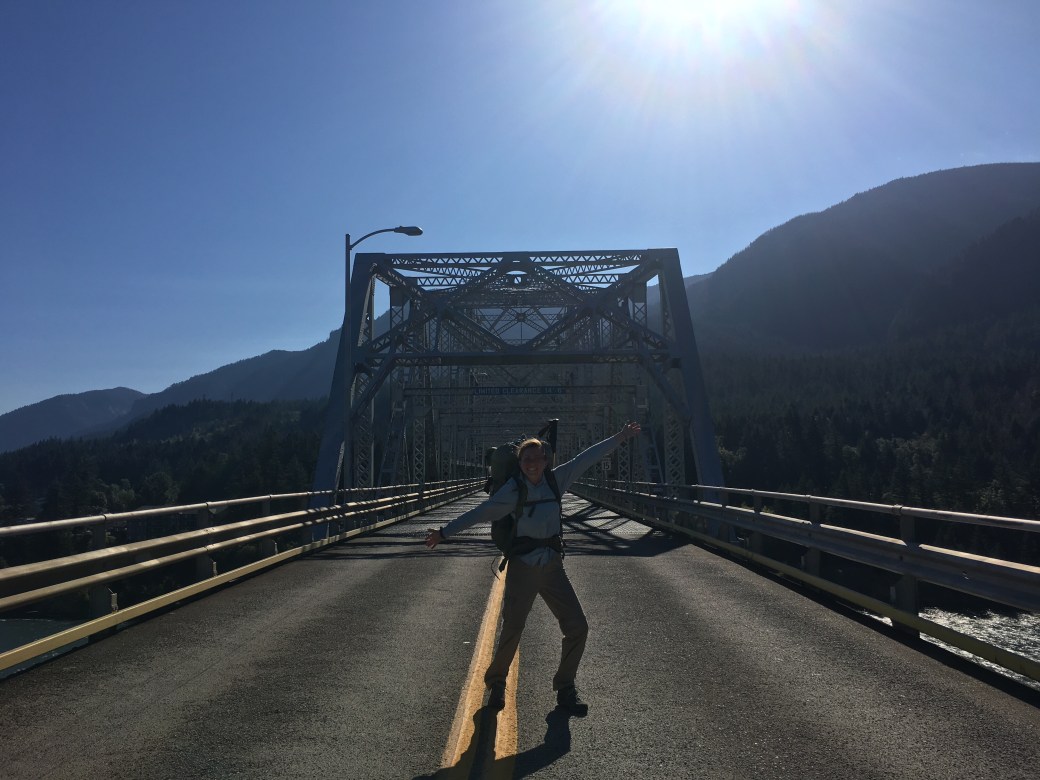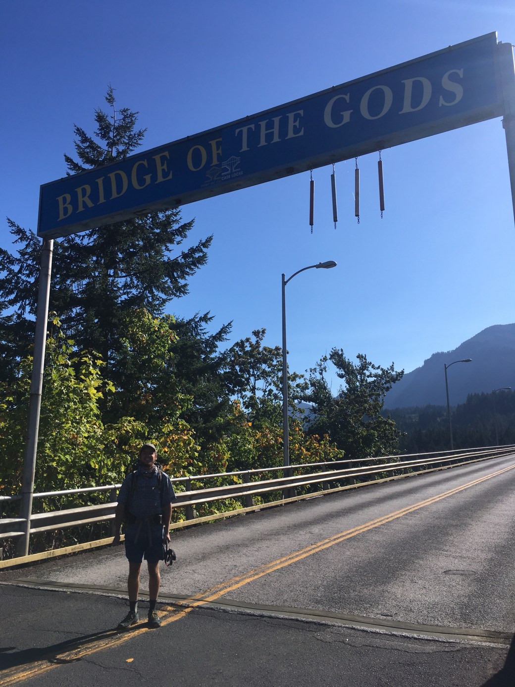 Leaving Oregon, hikers cross the “Bridge of the Gods.” This walk is a mildly windy and terrifying experience with the Columbia River below and cars zipping past. We did get high fives from a passing vehicle occupant.