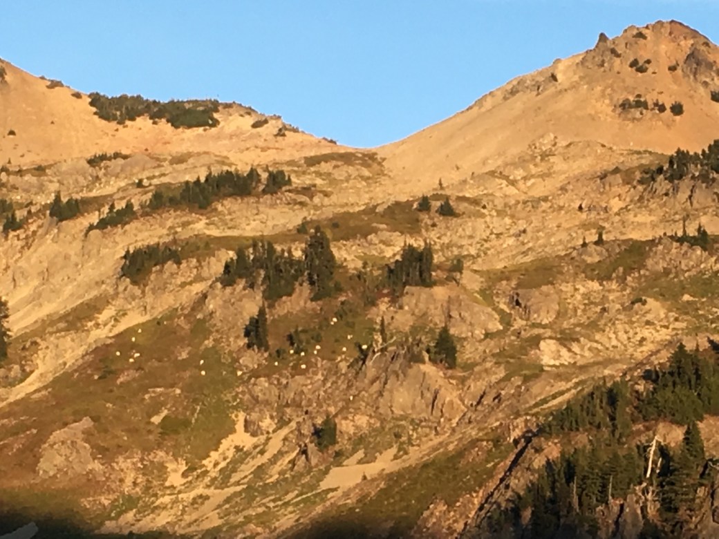 Our next wilderness we hiked through was the Goat Rocks Wilderness, which is currently one of my all time favorite areas. We hiked through Cispus Pass and got to see the resident goats of the wilderness (the white dots in the second picture).
