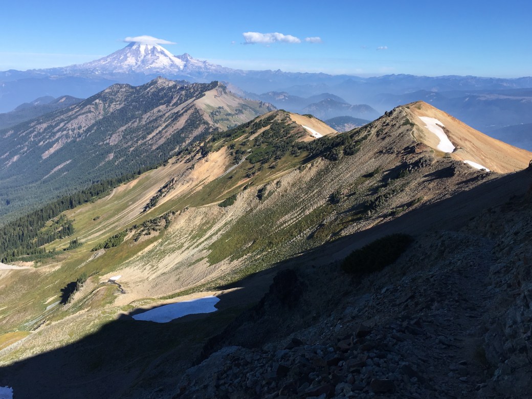 The next day was spectacular. We started the morning off with Mt. Adams, followed by Mt. St. Helens, and the Mt. Rainier. On this section hikers walk along the wilderness’ famous knife edge.