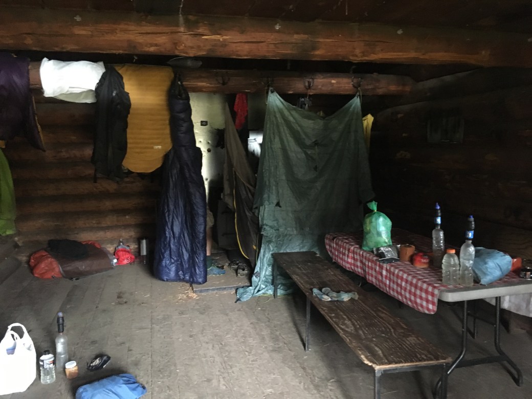 At the Mike Urich Cabin hikers were having a drying party as everything was soaked. We also got some trail magic from some day hikers.