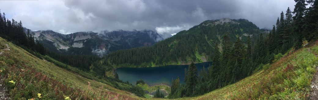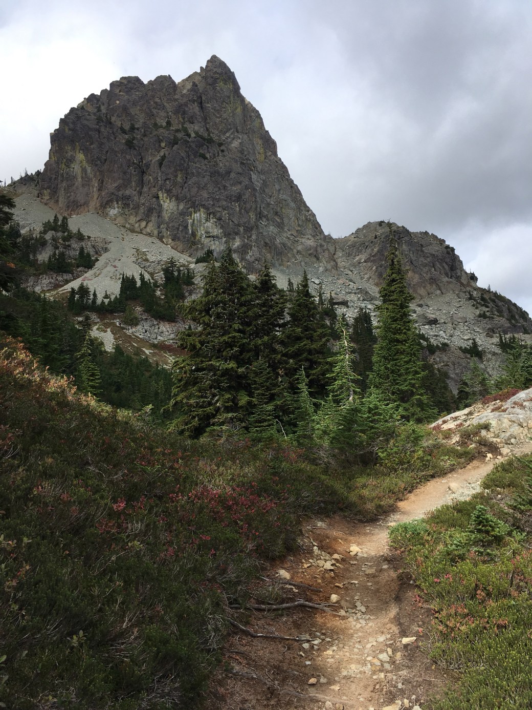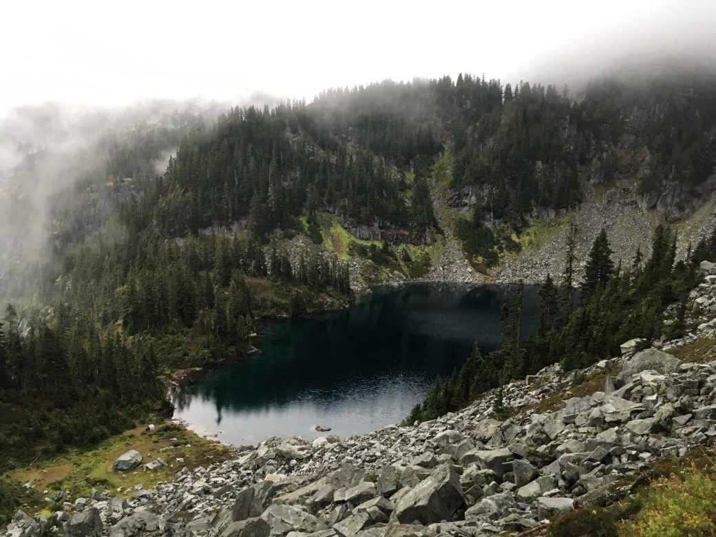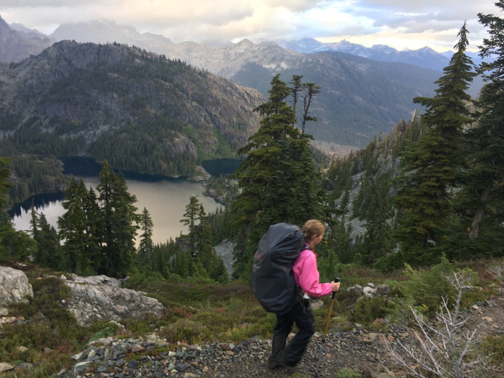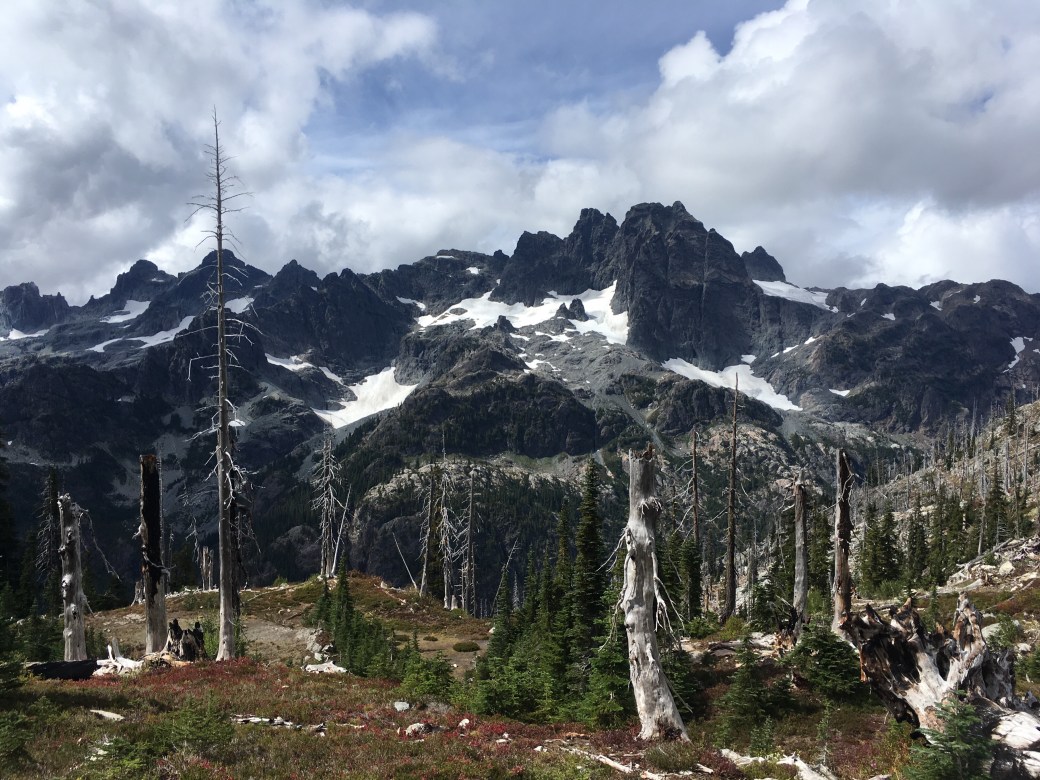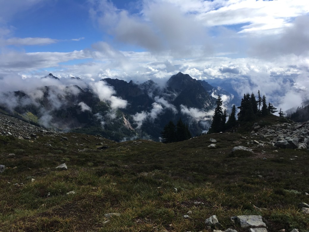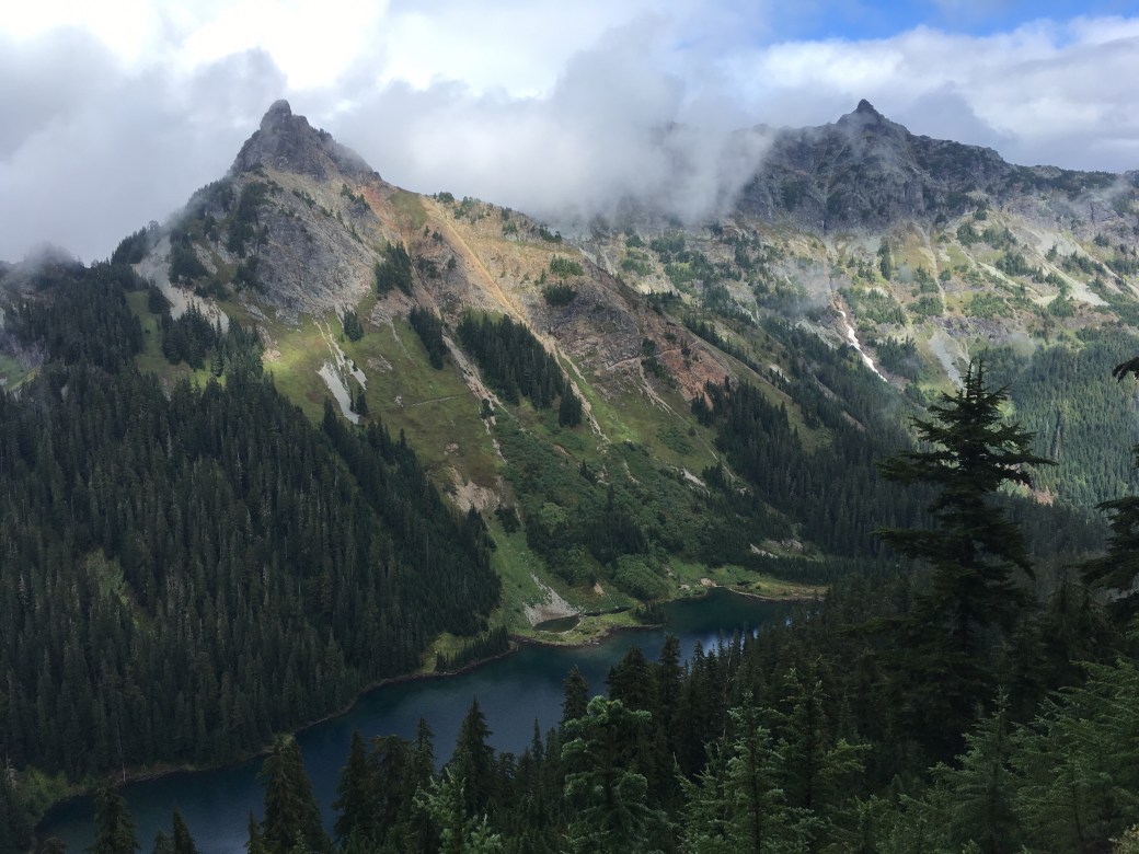 The next day we entered the Alpine Lakes Wilderness. We walked across the Kendall Catwalk with a cloudy view. In the afternoon the clouds cleared and we had spectacular views of the mountains and lakes. We did quite a bit of climbing in this wilderness area, but the mountains made it completely worth it. The rain or threat of rain was a constant presence, so everyone was happy to make it to Stevens Pass to dry out again. Many hikers stay at the Mountaineer’s Lodge next to the ski resort.